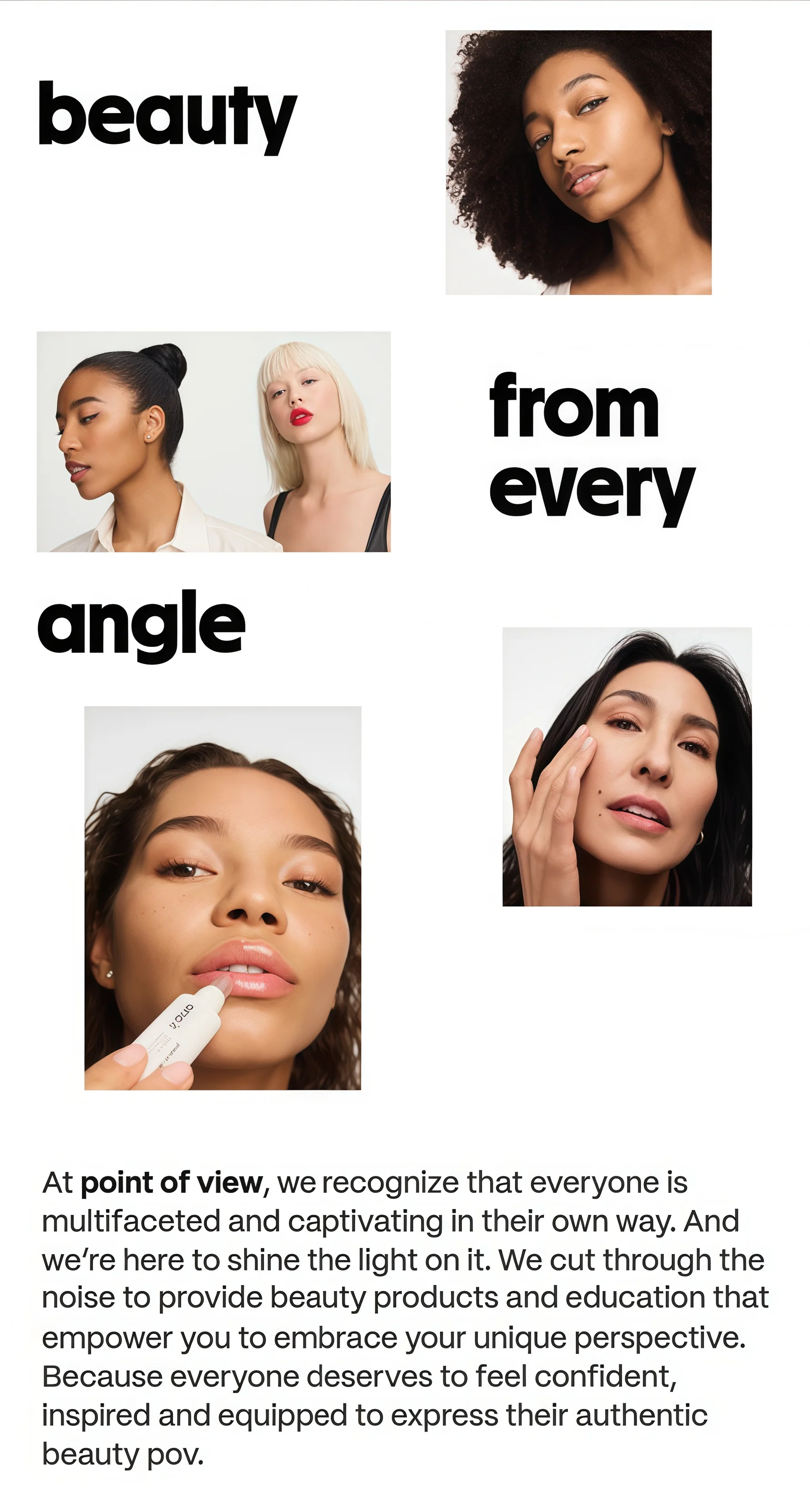our purpose is to empower all people to fully inhabit their unique beauty point of view by celebrating what makes you, you.
